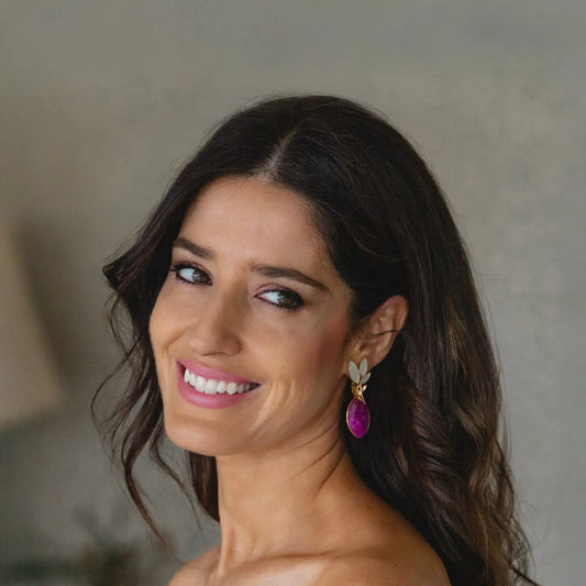 Set Matrix Pendientes Leaves y Eye Blanco y Buganvilla
