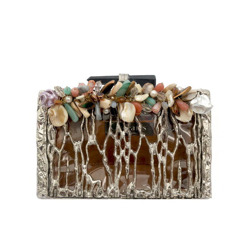 Combinado con este Clutch, de nuestra colección y los pendientes Circus con piedras naturales multicolor. ¿Qué más podemos pedir?