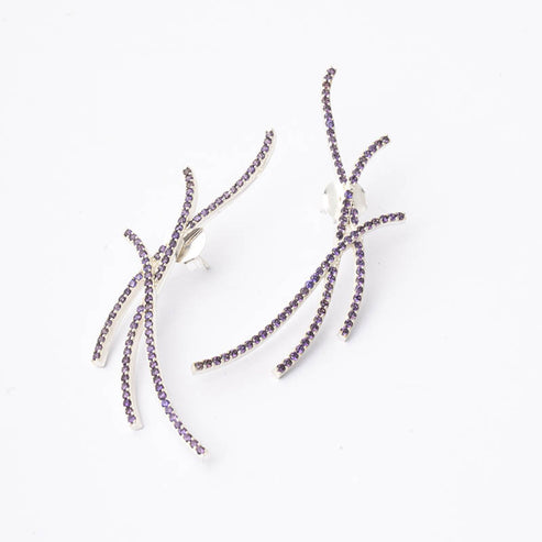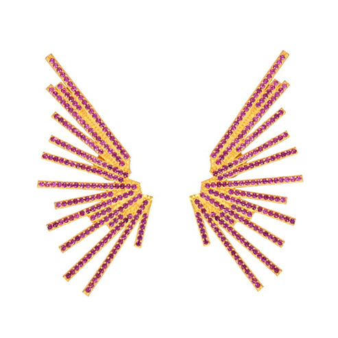 Ella los ha combinado con un tono que va desde el fucsia al morado. Nos parece espectacular, al igual que los pendientes Engel con circonitas.