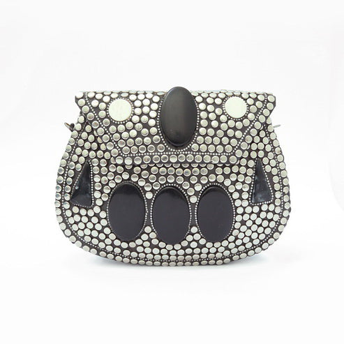 El choker de moda, este clutch y pendientes con un toque rústico maximiza este binomio de body y falda de lunares con ese toque tan “Pretty Woman”. Una propuesta perfecta para eventos de mañana y hasta para mamis de comuniones o bautizos.