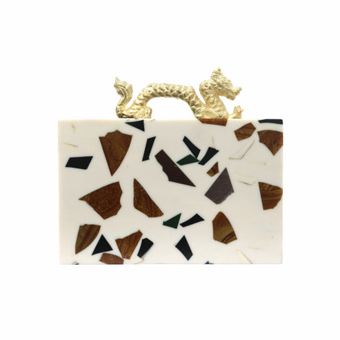 Cuándo no te sientes cómoda llevando vestidos, llega el mono a salvarte la vida; complementado con un kimono vaporoso y este cofre repujado, no verás una invitada con más estilazo: