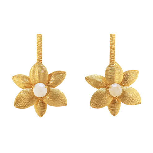 Acabando con las perlas, pasamos a una piedra que también enamora cuando hay que buscar Pendientes para el gran compromiso. En este caso, los Pendientes Sofía Piedra Lunar guardan un atractivo que a todos encanta. Se trata de unos Pendientes dorados formados por una línea vertical que acaba en flor con una pequeña piedra lunar en su centro.
