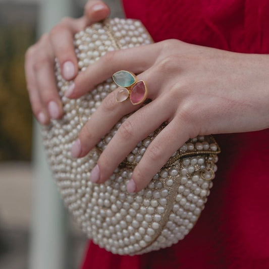 Anillo Grayas Verde agua y Rosas
