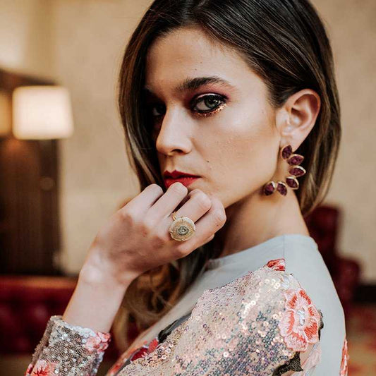 Anillo Greas Drusa Morado. Fucsia y Verde