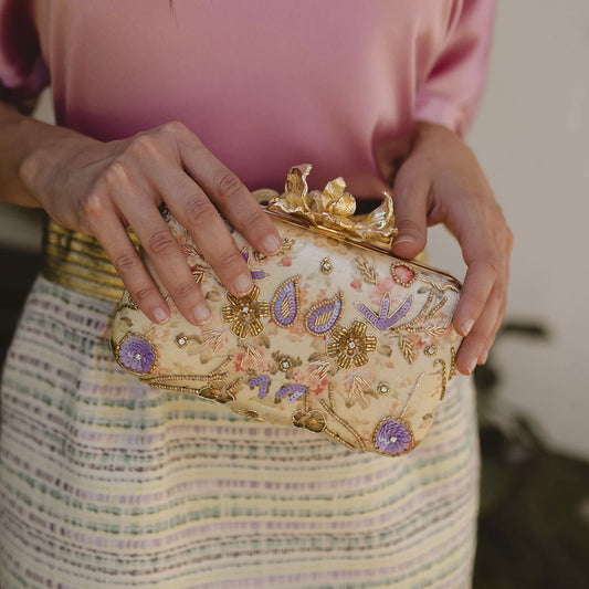 Bolso Ovalado Lennox Floréal Beige, Marrón y Verde
