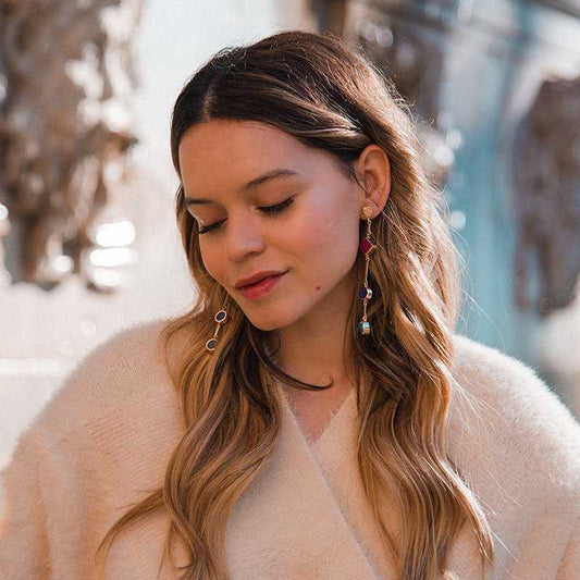 Pendientes Atocha Fucsia, Morado y Azul turquesa