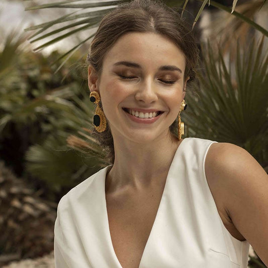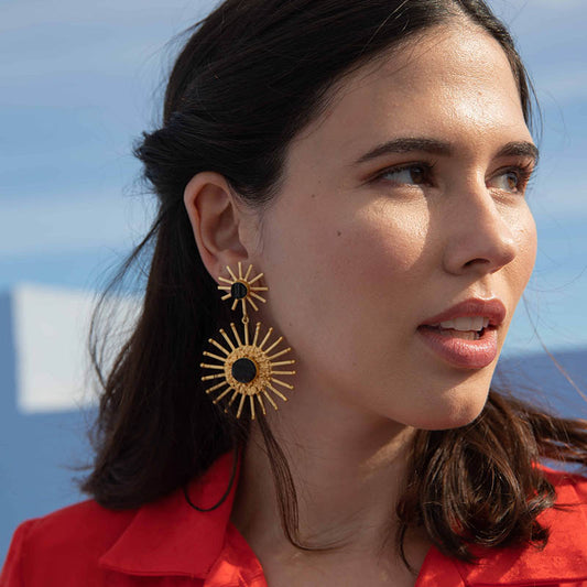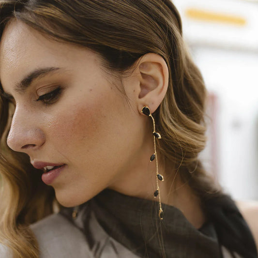 Pendientes Vega Plata Negro, Piedra Lunar y Labradorita