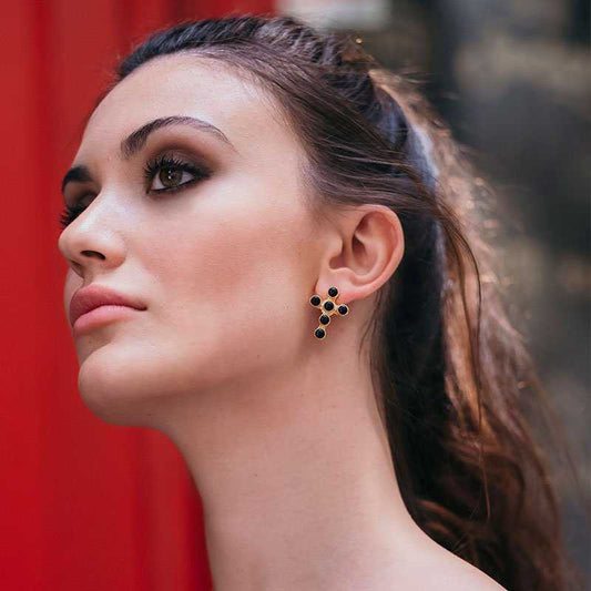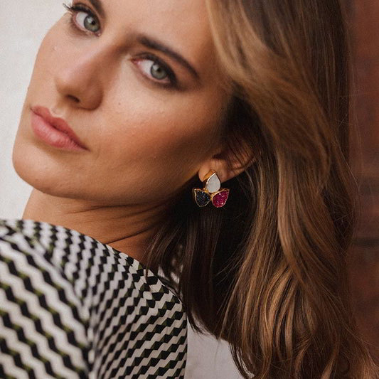 Pendientes Boreal Negro. Burdeos Rosado y Blanco