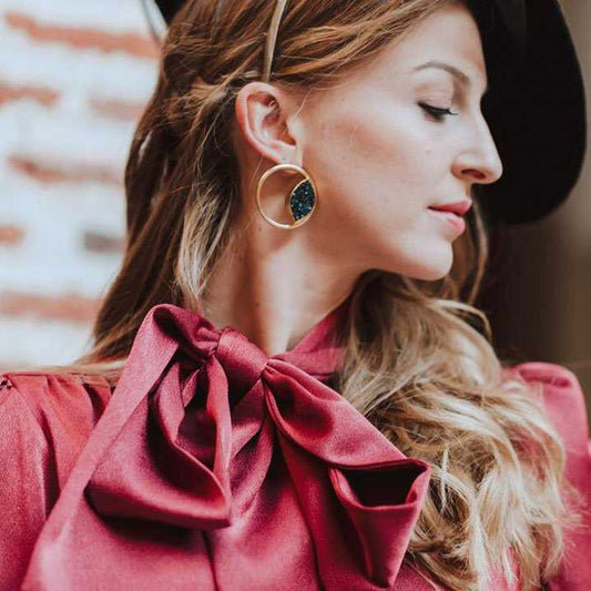 Pendientes Yoga Big Burdeos. Blanco y Negro