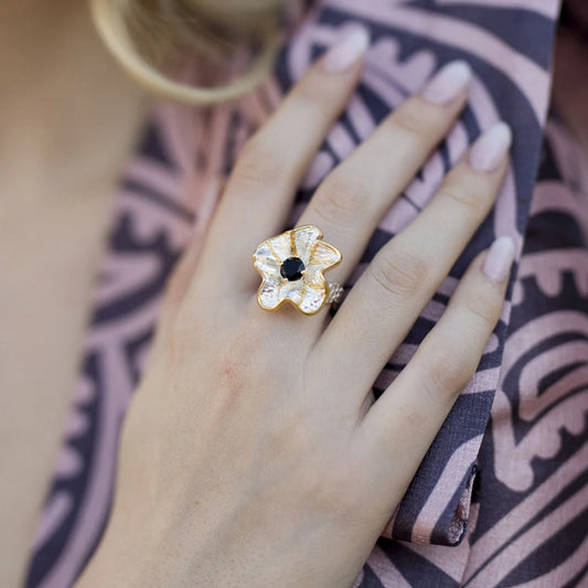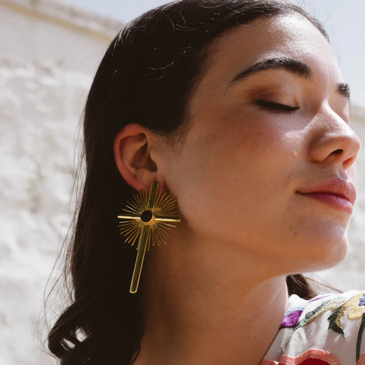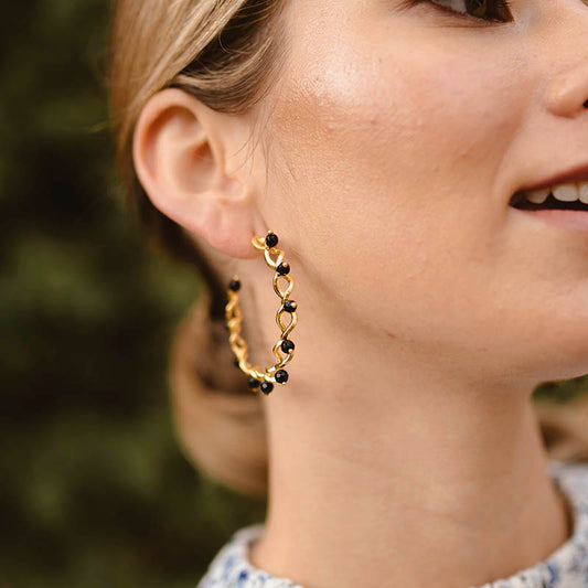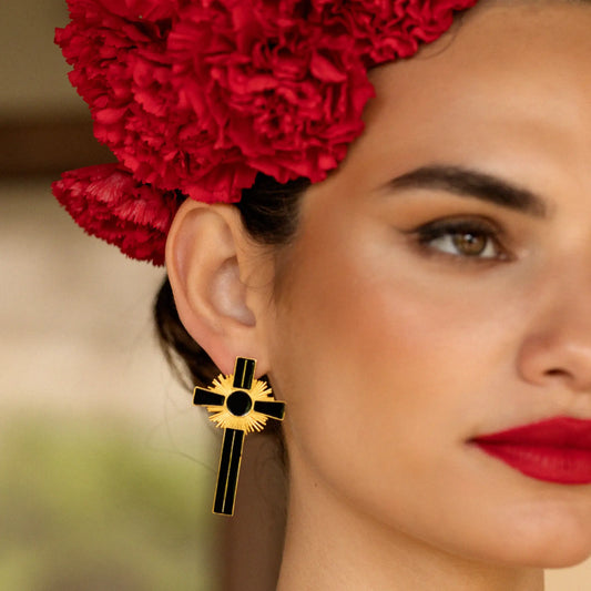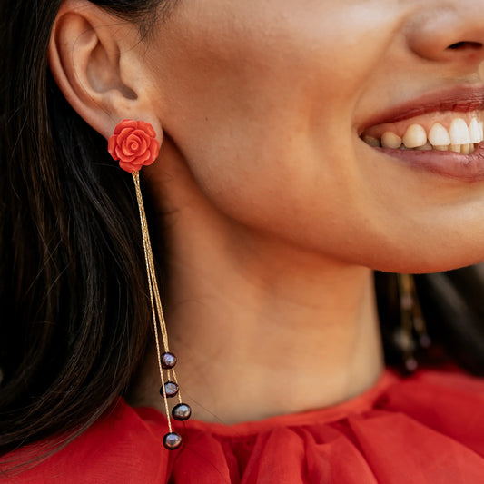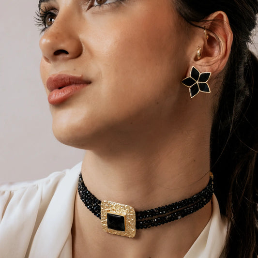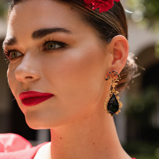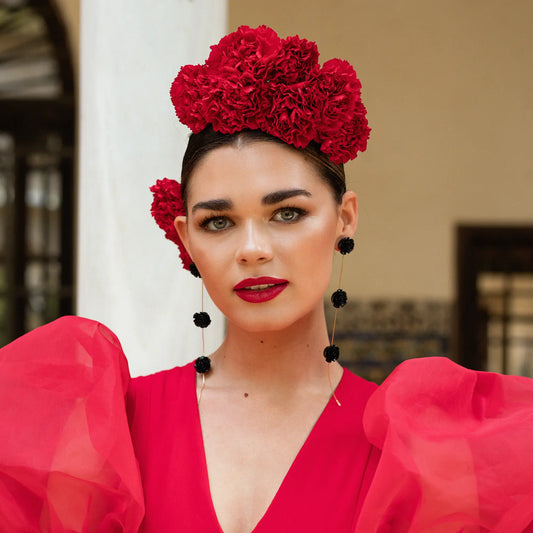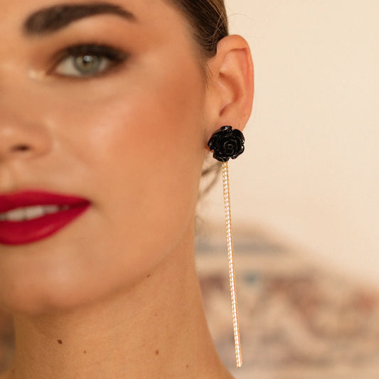 Pendientes Cadenza Flor Flecos Negro (desmontables)
