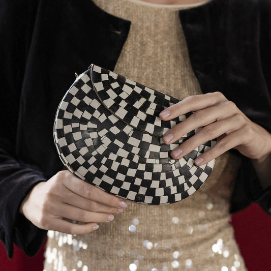 Bolso Cofre Mosaico Ajedrez Blanco y negro