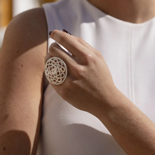 Clutch Deluxe Circular Luminia Plata Nácar Shine