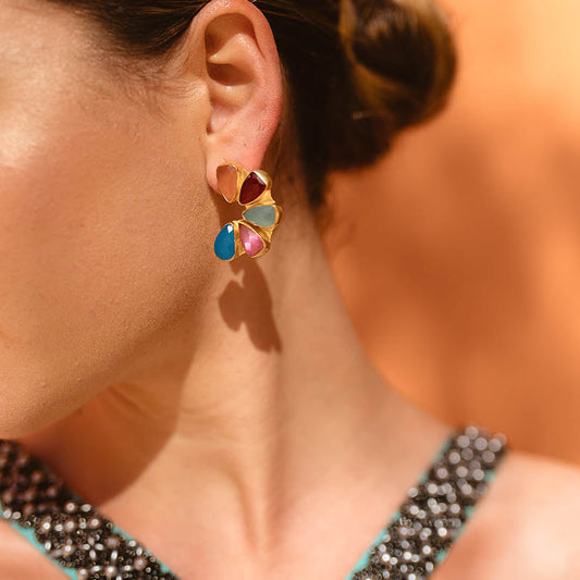 Pendientes Madame Ed. Limitada Azul Lapis, Crema y Piedra Lunar