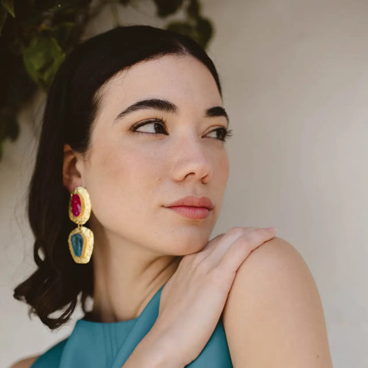 Pendientes Elenis Ed. Limitada Rough Fucsia y Azul Turquesa