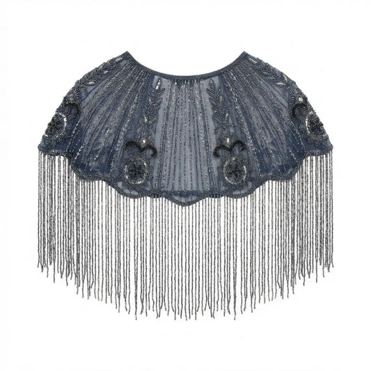 Capa Tul Bordada Velaria Gris Perla y Plata