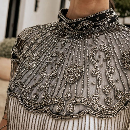 Collar Bordado Nocturnia Blanco y Oro Rosa
