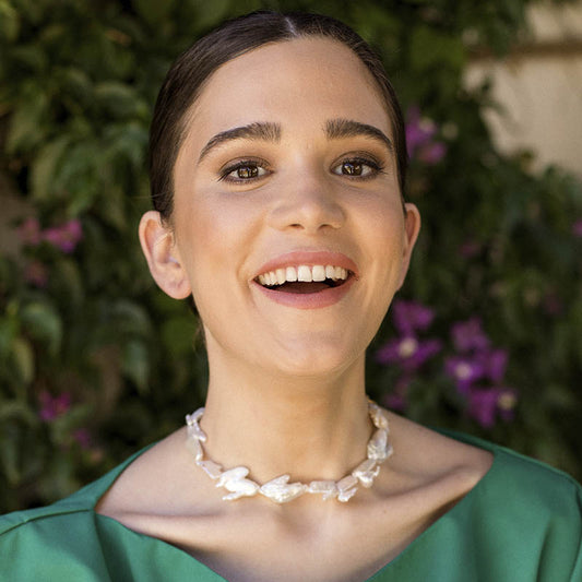 Collar Bordado Nocturnia Blanco y Oro Rosa