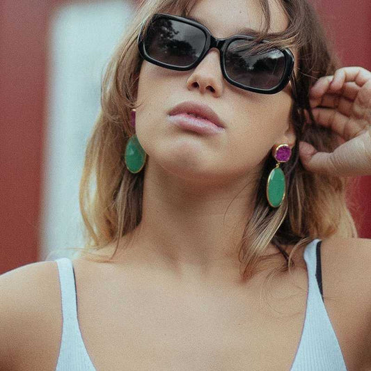 Pendientes Rupia Desmontable Fucsia mo y Verde