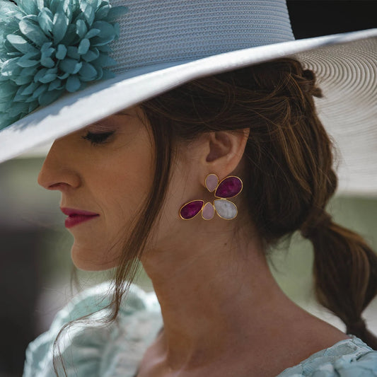 Pendientes Stonehenge Fucsia, Rosa claro y Piedra Lunar