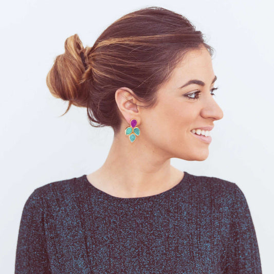 Pendientes Acanthus Plata Fucsia mo y Verde