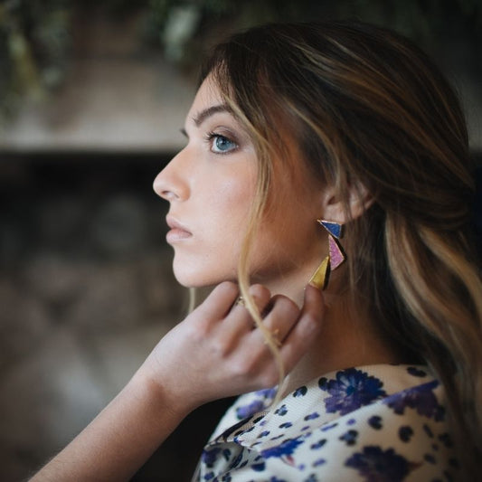 Pendientes Fénix Morado. Fucsia y Amarillo