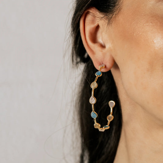 Pendientes Aros Aldar Blanco, Turquesa y Beige