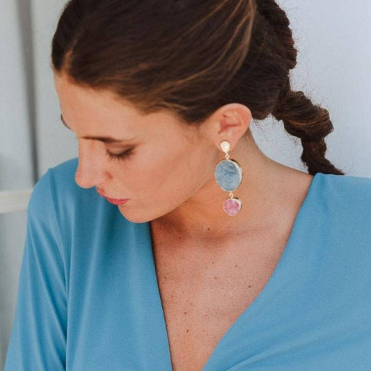 Pendientes Vega Plata Rosa claro, Lunar y Azul agua
