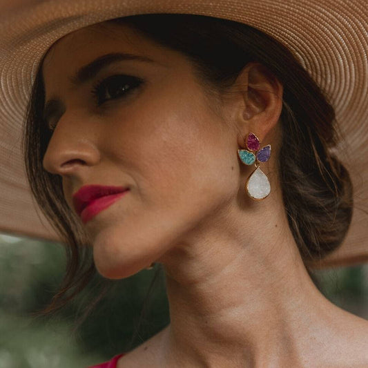 Pendientes Triología Rubí, Verde y Verde agua amazonita