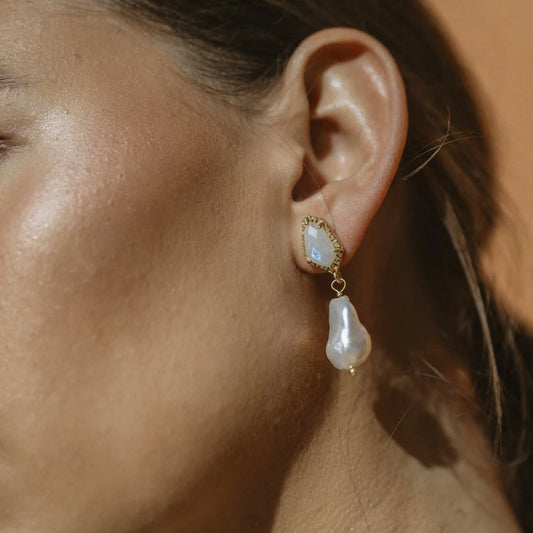 Pendientes Mumbai Ed. Limitada Plata Piedra Lunar y Verde Agua