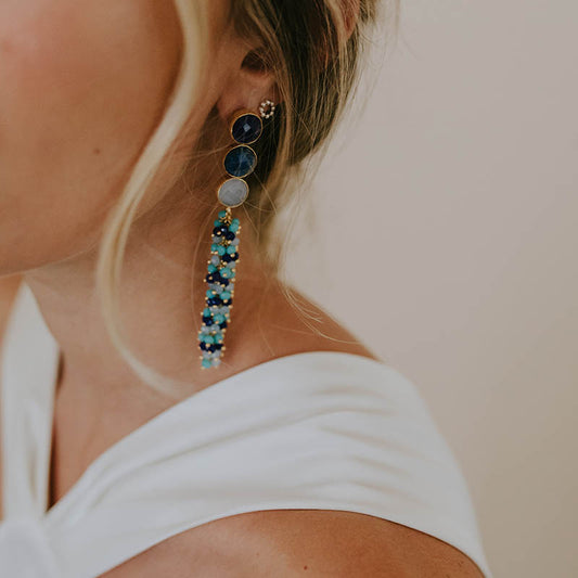 Pendientes Mademoiselle Fucsia, Azul turquesa y Verde