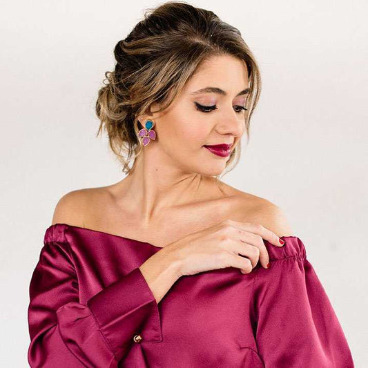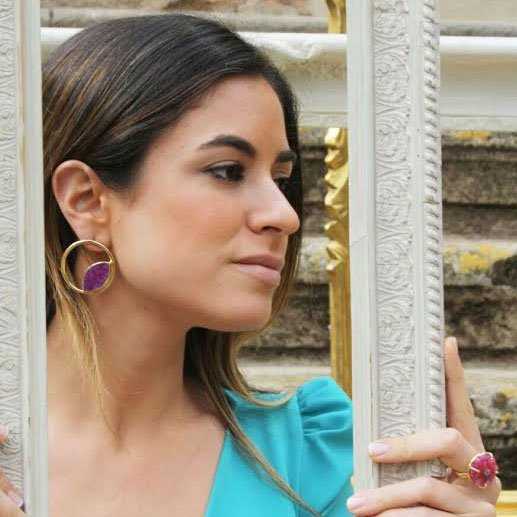 Pendientes Mademoiselle Negro. Fucsia y Blanco