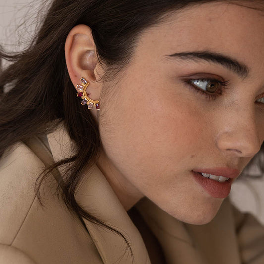 Pendientes Hali Pulido Plata Morado y Fucsia