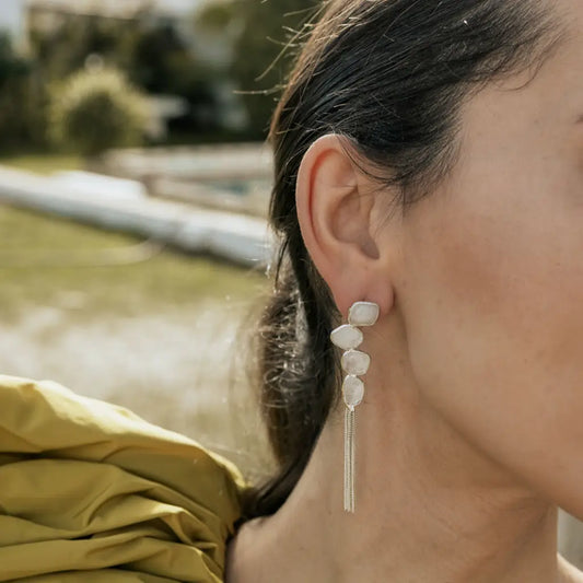 Pendientes Fili Flecos Blanco nácar