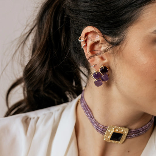 Pendientes Lino Ed. Limitada Rough Plata Morado Amatista