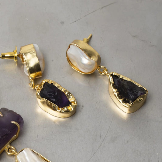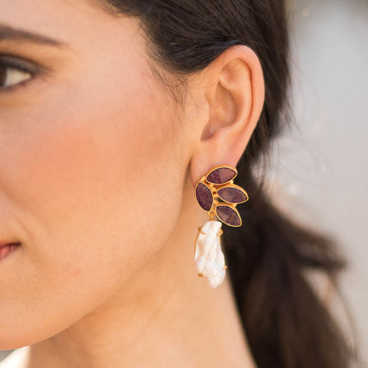 Pendientes Tiga Morado, Perla y Rosa cuarzo