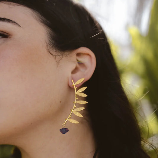 Pendientes Fronda Rough Morado