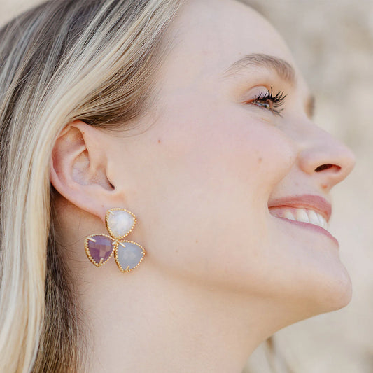 Pendientes Minyona Piedra Lunar, Morado y Azul claro