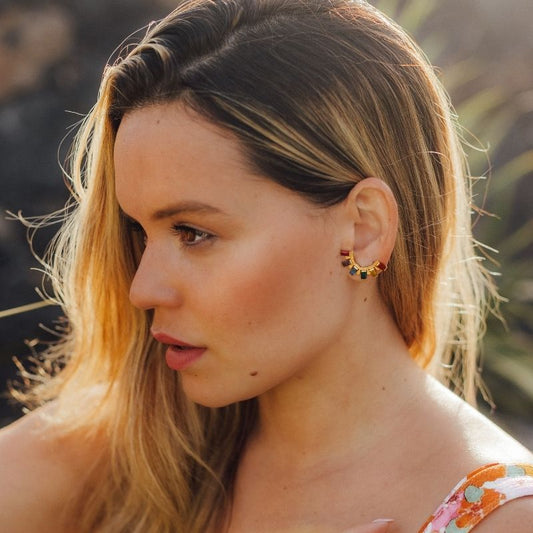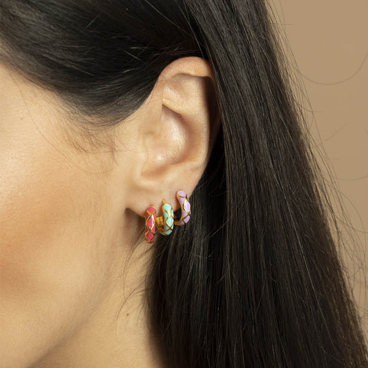 Pendientes Aros Vau Turquesa, Morado y Ámbar