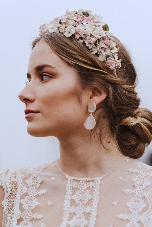 Pendientes Camelia Piedra Lunar y Rosa claro