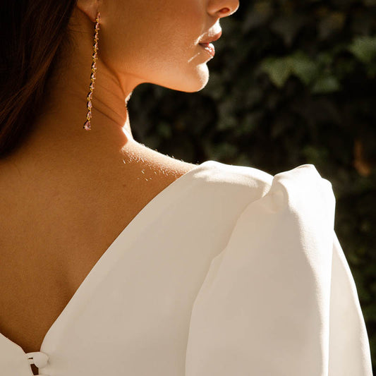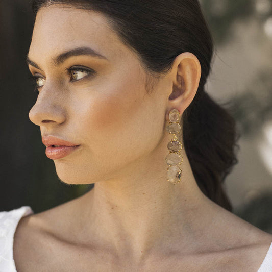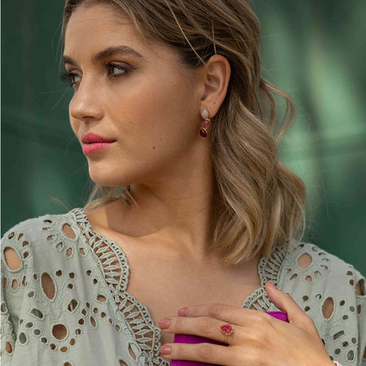 Pendientes Judit Iconic Piedra Lunar, Rosa y Rubí