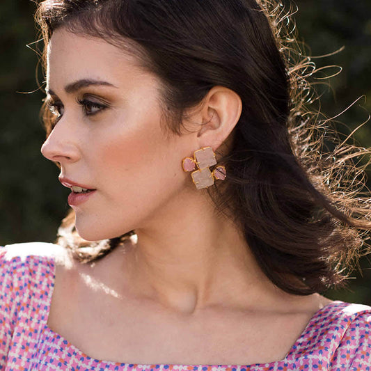 Pendientes Trópico Rosa cuarzo