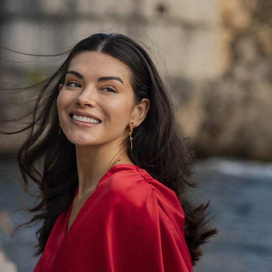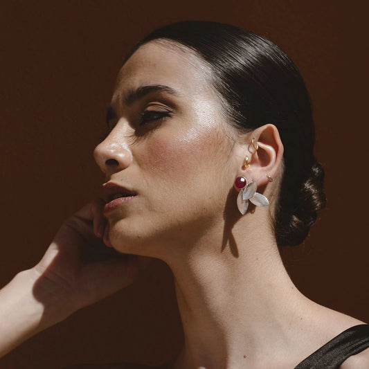 Pendientes Judit Iconic Plata Piedra Lunar, Labradorita y Rubí