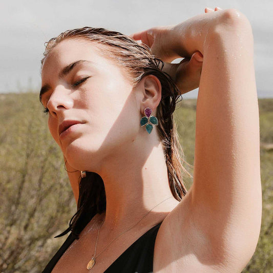 Pendientes Acanthus Plata Fucsia mo y Verde