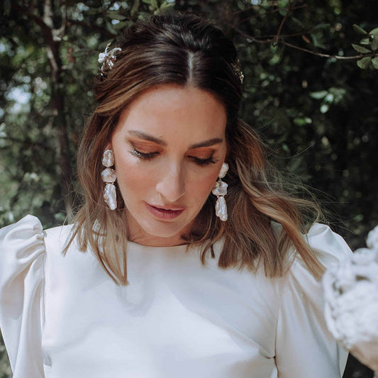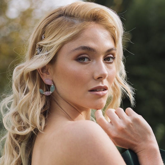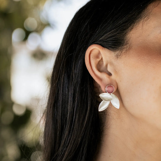 Pendientes Sauce Ed. Limitada Plata Piedra Lunar y Rosa cuarzo