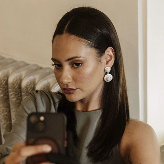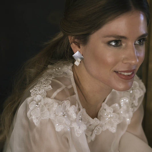 Pendientes Mini Diwa Ed. Limitada Pulida Plata Piedra Lunar