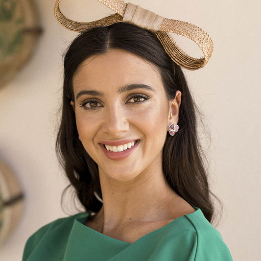Pendientes Notredame Plata Fucsia mo y Blanco
