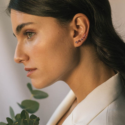 Pendientes Glam Trepadores Plata Rubí y Morado