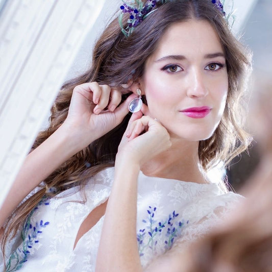 Pendientes Hali Ed. Limitada Plata Morado y Piedra Lunar