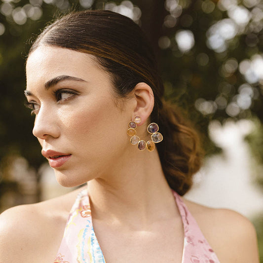 Pendientes Hali Ed. Limitada Plata Morado, Fucsia y Piedra lunar