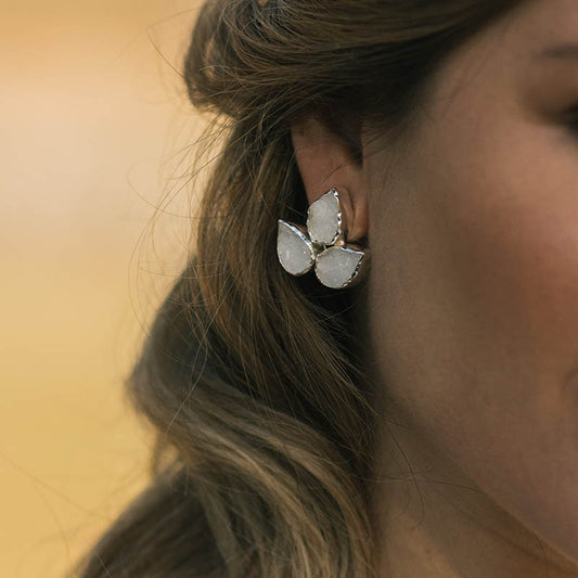 Pendientes Earcuff Cometa Ed. Limitada Plata Blanco y piedra lunar
